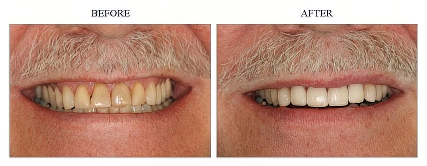 Chris had already restored many of his back teeth with crowns, but his front teeth had multiple discolored composite (plastic) fillings and were somewhat crooked and stained. We elected to simply restore only the 4 front teeth with all ceramic crowns and porcelain veneers. This was accomplished in only 2 appointments and the results were astonishing! Chris is a handsome guy and his new smile is comfortable and pleasing!